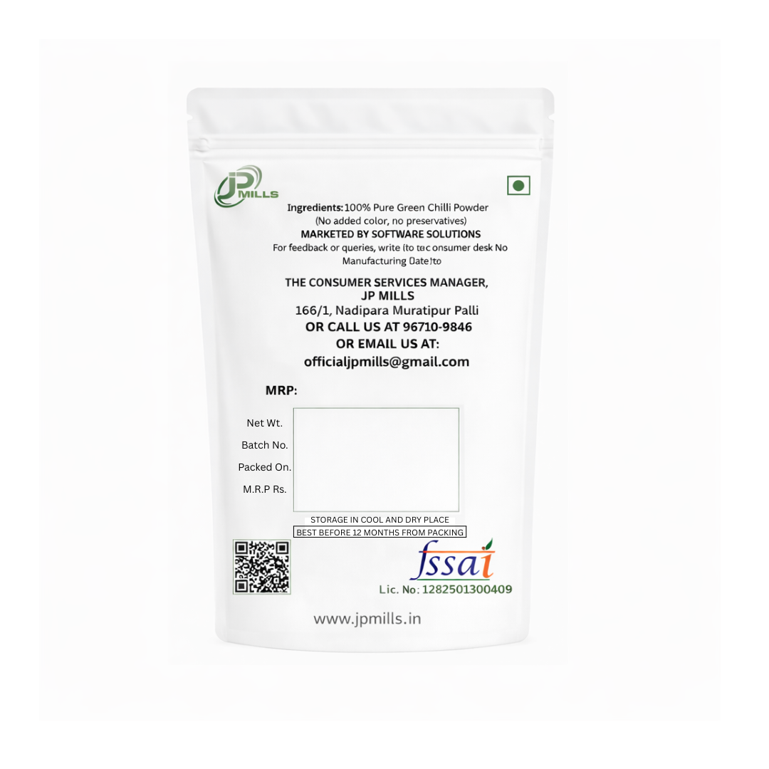 Hygienically processed and FSSAI licensed, J.P. Mills Green Chilli Powder ensures safety, quality, and long-lasting freshness. Trusted by households, chefs, and food businesses, it delivers consistent taste and performance in every pack.